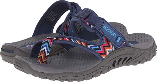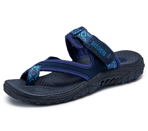 Skechers Women's Reggae-SOUNDPROOF-Thong Slide Multi-Strap Sandal, Navy, 8 M US