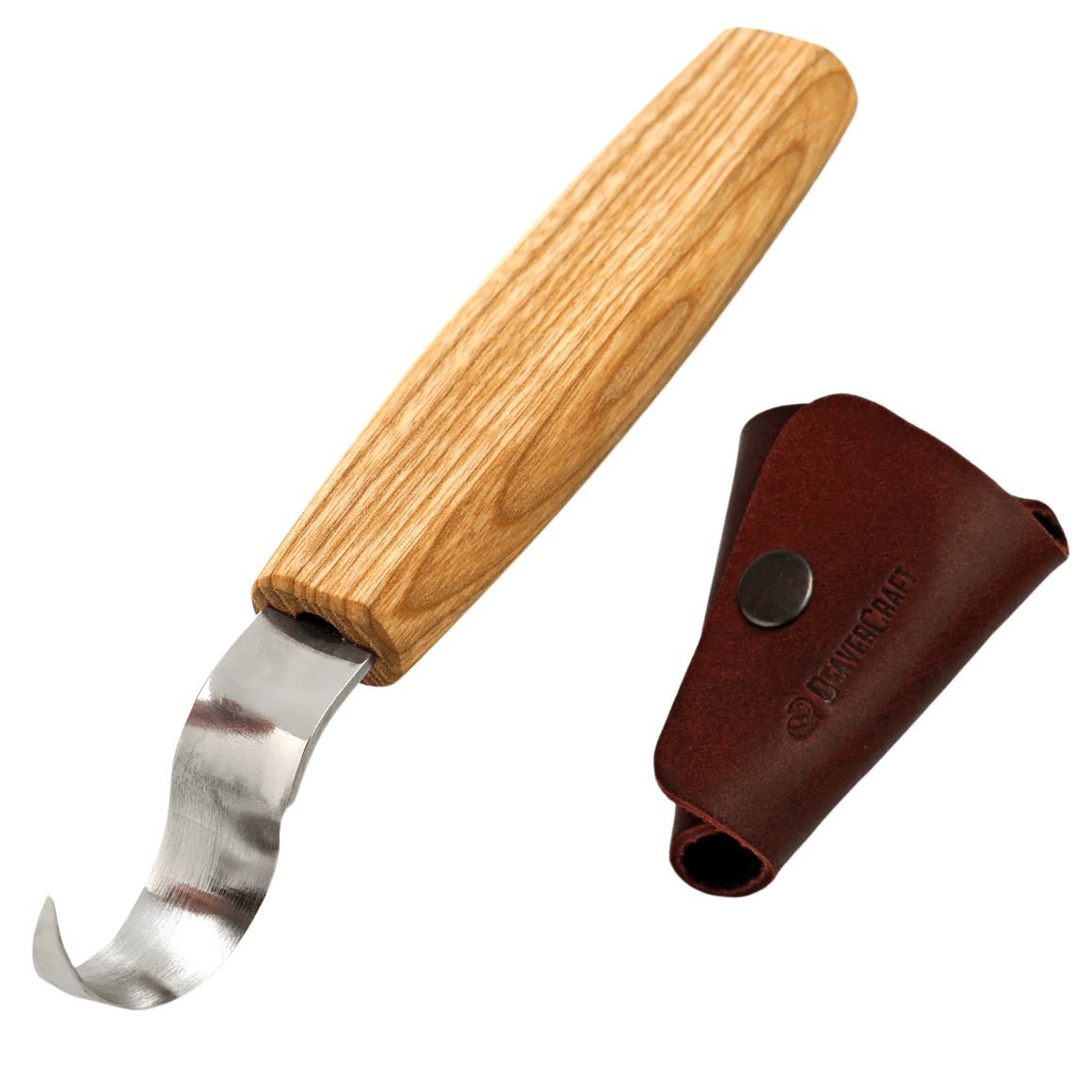 BeaverCraft SK2S Ek Skedkniv 30mm med läderfodral