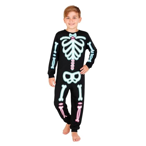 A2Z 4 Kids Pojkar Skelett Skriva Ut Halloween Onesie Kostym Med Ribbad Cuff - Skeleton Onesie 933 Black._12-14