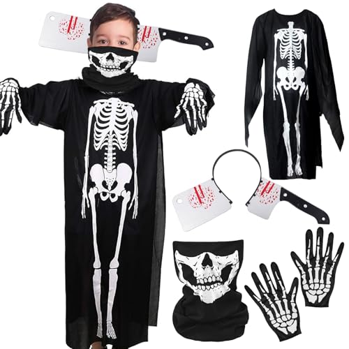 AEYAKA Sensenmansdräkt barn – lysande Grim Reaper Halloween-outfit för pojkar och flickor – läskigt utklädningsset för karneval och halloween