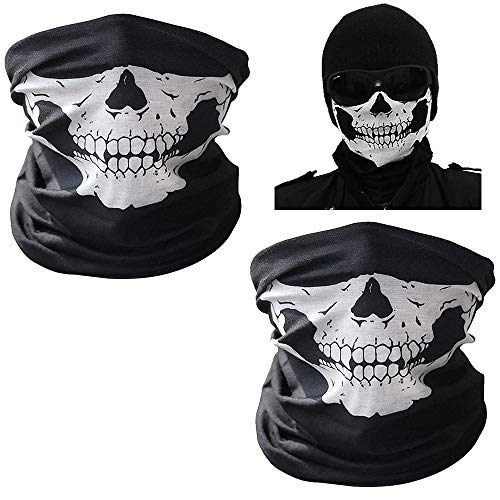 UBERMing 2 Pcs Balaclava Face Scarf Skeleton Skull Face Mask Half Face Mask Skull Neck Tubular Protective Dust Mask Halloween Party Mask Unisex Scarf Headwrap Biker Bandana – Black