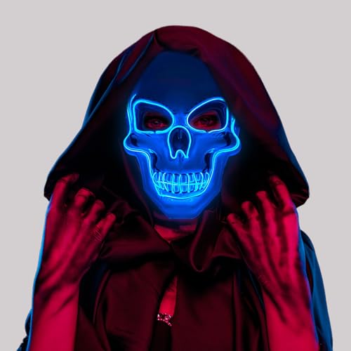 Halloween Led Mask Hillylolly Horror Luminous Purge Mask, Creepy Skull Mask med 3 ljuslägen, Skeleton Mask Led för män och kvinnor, Cosplay kostymdekoration för Halloween, Carnival (Blå)
