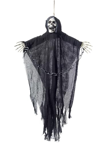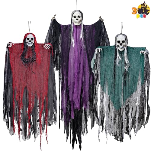 JOYIN 3 stycken Halloween-skelett-sensensmannen dekoration att hänga upp, en 134 cm stor halloween skelett, två 80 cm stora spöken för spökhus rekvisita, trädgårdsdekoration