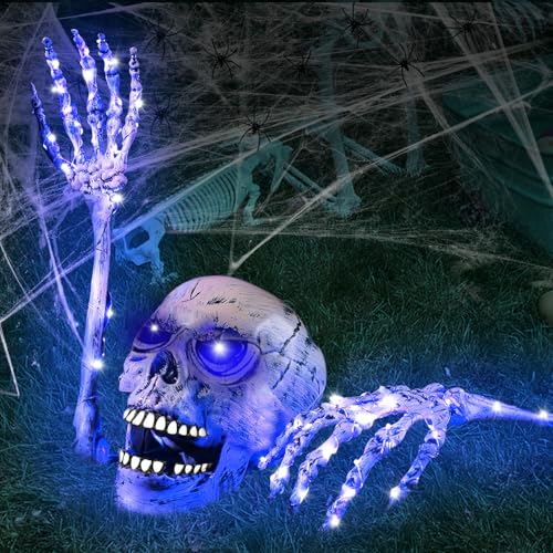 Skelett halloween dekoration trädgård läskig, dödskalle dekoration, skalle med skelett hand, skelett naturlig storlek för utomhus kyrkogård dekorationer