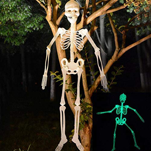 Gmuret Halloween skelett dekoration, 90 cm lysande skelett hängande flexibla leder skelett utomhus galen skrämmande hängande rekvisita