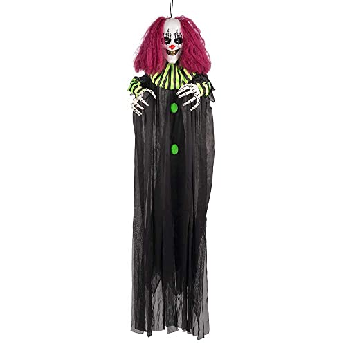 Boland 73047 – Hängande terrorclown, storlek 130 cm, lysande ögon och ljud, batteridriven, skelett, dekoration, hängande dekoration, hängare, halloween, karneval, temafest