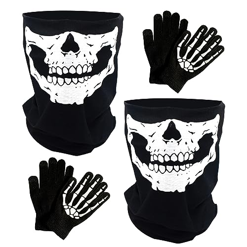 JOYUE Skelett mask skelett gloves, 2 stycken dödskallemask + 2 par lysande skeletthandskar, skalle motorcykel skelett halv ansiktsmask, ansiktsmask, svart skalle för halloween kostym fest
