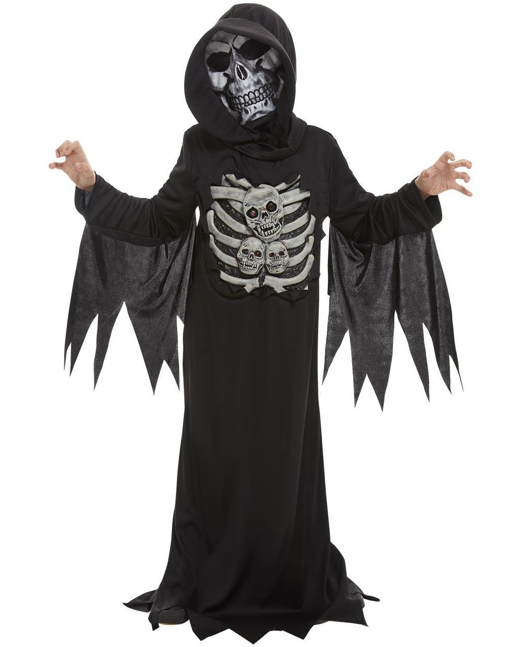 Smiffys midnattsskelett skördeman kostym rock och huva mask, halloween barn maskeradklänning, skelett utklädningsdräkter