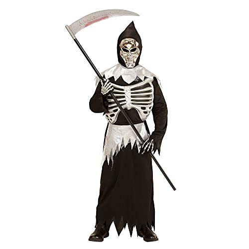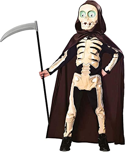 Amscan 9907122 – barndräkt Grim Reaper, rock, mask, sensenmann, stort huvud, skelett, temafest, karneval, halloween