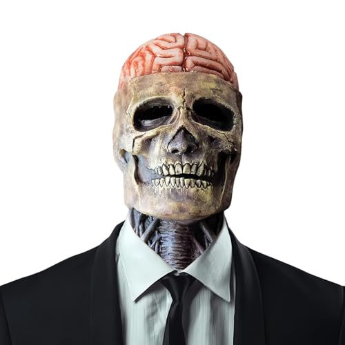 YZMXIY Halloween mask dödskalle mask, läskig heltäckande huvud 3D skelett mask av naturlig latex halloween dekoration för cosplay halloween party dödskalle huvudbonad (röd hjärnblomma)