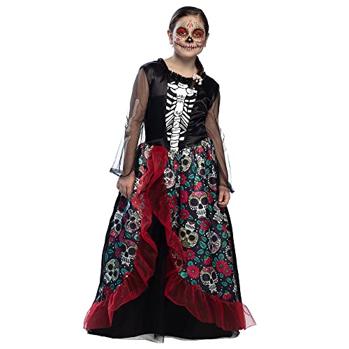 W WIDMANN MILANO Party Fashion – barndräkt skelett, klänning med tyllkjol, Dia de los muertos, utklädnad för halloween
