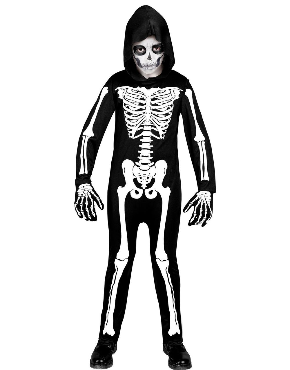 Smiffys barns skelettdräkt, allt i en overall med huva, storlek: M, färg: svart, 55012