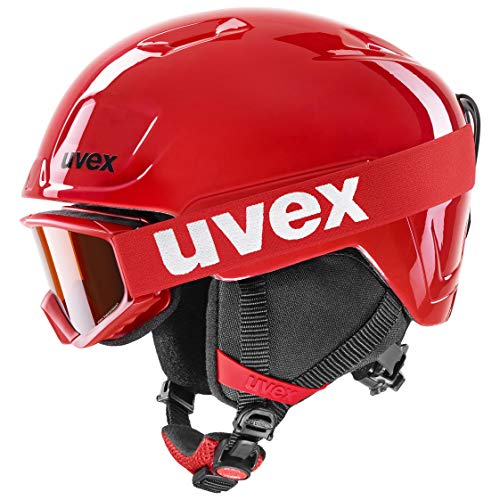 uvex heyya set - skidhjälm inkl. skidglasögon för barn - individuell storleksanpassning - kontrasthöjande - red-black - 46-50 cm