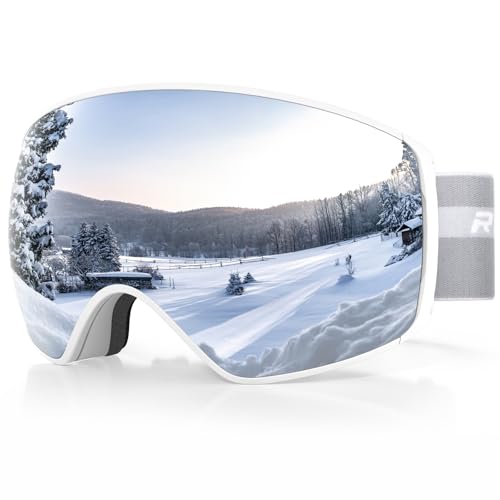 RIOROO skidglasögon, snöglasögon för män, kvinnor, damer och ungdomar, snowboardglasögon över glasögon, skidglasögon med utbytbara linser, OTG UV-skyddskompatibelt hjälm, anti-imma, skidåkning,