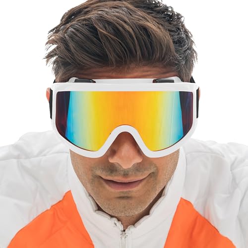 FUNWICT Skidglasögon för män kvinnor vuxna med anti-dimma UV-skydd vindtäta skidglasögon över glasögon, kompatibla med skidhjälm för skridskoåkning snowboard snöskoter (silver)