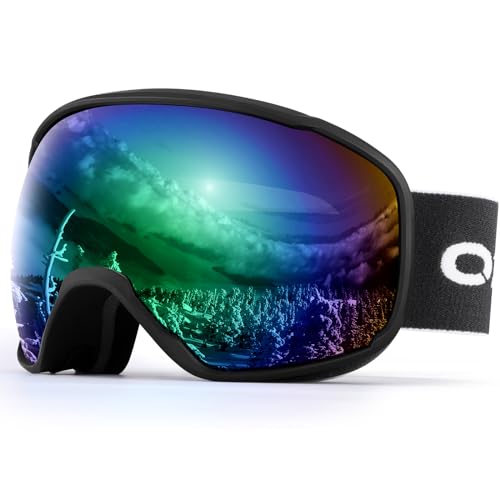 OutdoorMaster Uggla skidglasögon OTG, snö snowboard glasögon för män kvinnor ungdomar, anti-dimma, 100% UV-skydd