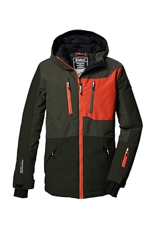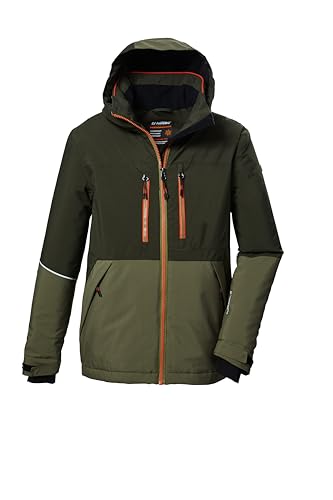 killtec Skidjacka för pojkar, funktionell jacka med huva och snöfall, KSW 387 BYS SKI JCKT, oliv, 152, 42077-000