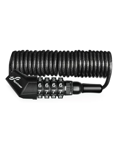 Sportneer Cykellås, kabellås, hjälmlås, 180 cm, extra långt kombinationslås av zinklegering och ABS med 4-stegigt nummerkod för cykelhjälm, motorcykelhjälm, barnvagn, snowboard, skidor