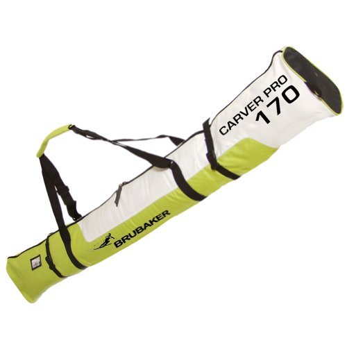 Brubaker Carver Pro Skidväska, vadderad, med dragkedja, slitstark och skärbeständig, skidväska för 1 par skidor och stavar, 170 cm – grön/vit