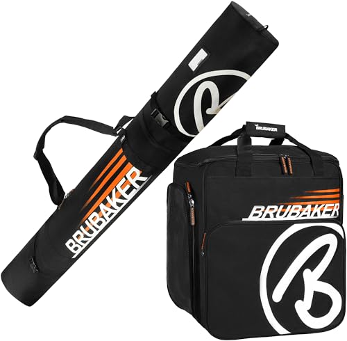 BRUBAKER HENRY Champion kombo väska och skidväska för 1 par skidor upp till 190 cm, stolpar, stövlar och hjälm – svart orange