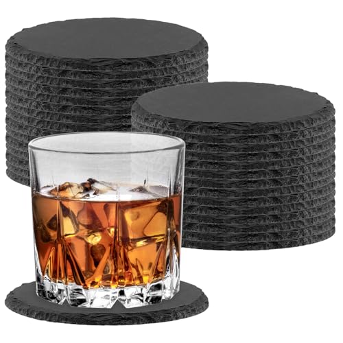 KEILEOHO Uppsättning av 30 runda skifferunderlägg, 10 cm runda dryckesunderlägg skifferstenar skifferplatta för glas, keramikmuggar, svart