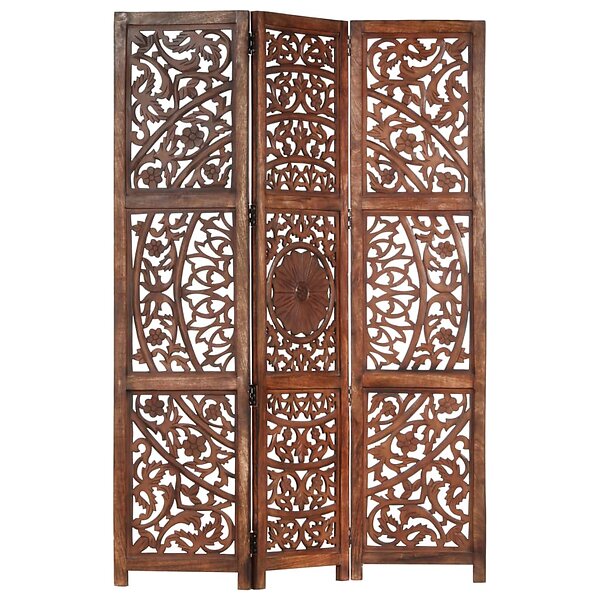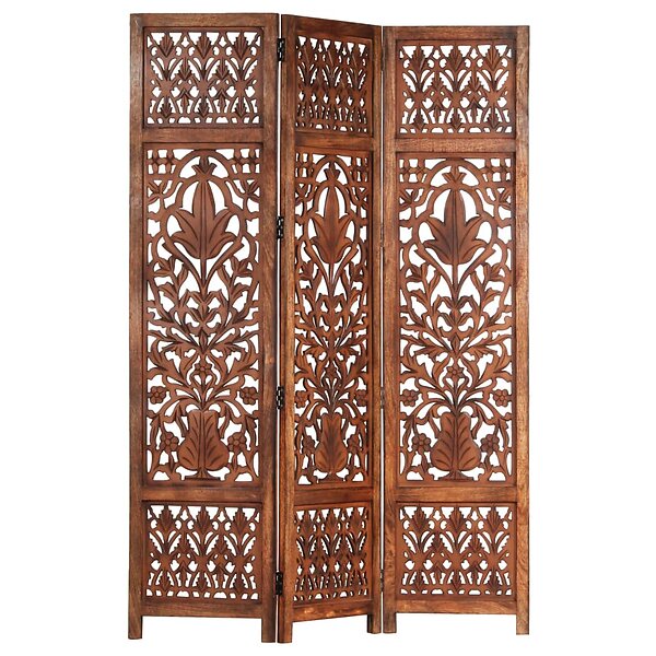 vidaXL Rumsavdelare 3 paneler handsnidad brun 120x165 cm mangoträ 285334