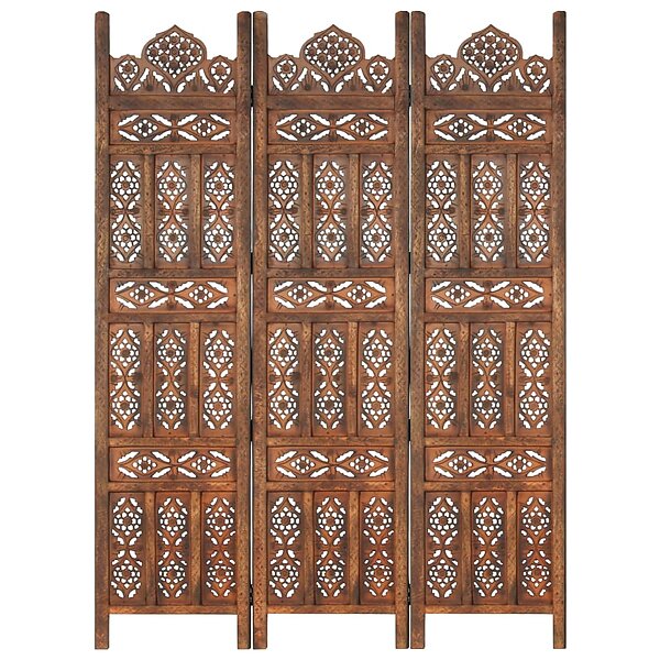 vidaXL Rumsavdelare 3 paneler handsnidad brun 120x165 cm mangoträ 285324