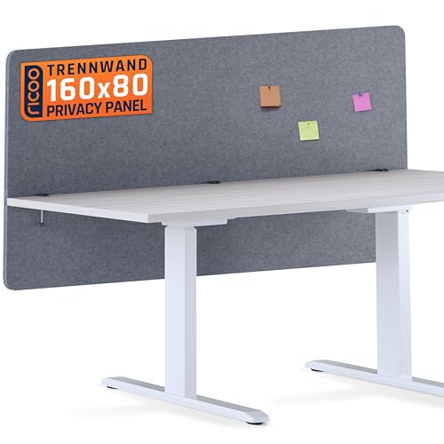 RICOO Akustisk skiljevägg för skrivbord 160 x 80 x 2,3 cm, integritetsskydd, ZAP1680-G, filt, grå, kontor, hem, kontor, anslagstavla, ljudisolering, rumsavdelare, bordsskiljevägg med klämmor,