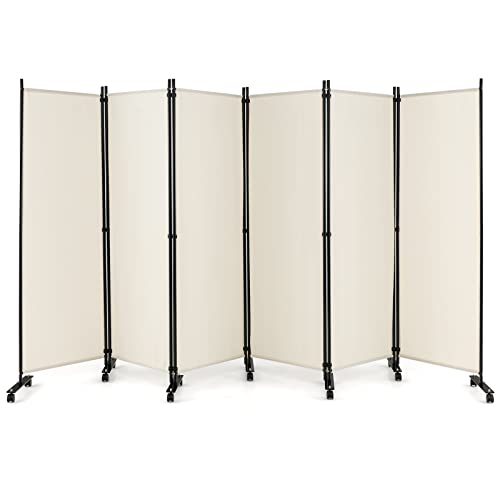 COSTWAY JV10725DEDE 334,5 x 172 cm rumsavdelare på rullar, paravent 6 delar, vikbar skiljevägg, av tyg, insynsskydd för mer integritet och flexibilitet (vit)