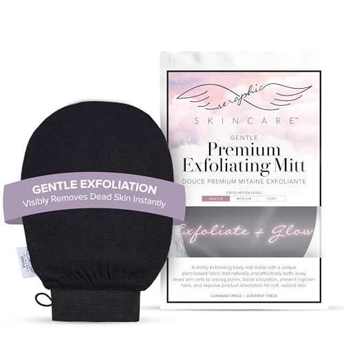 Seraphic Skincare Premium Exfoliating Mitt for Body, Gentle – Viscose Fiber Korean Exfoliating Glove for Sensitive Skin – Body Exfoliator for Self-Tan Removal and Application