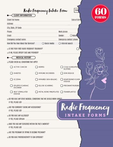 Radio Frequency Intake Forms: RF Skin Tightening Client Consultation & Medical History Questionnaire | 60 Forms, 120 Two-Sided Pages
