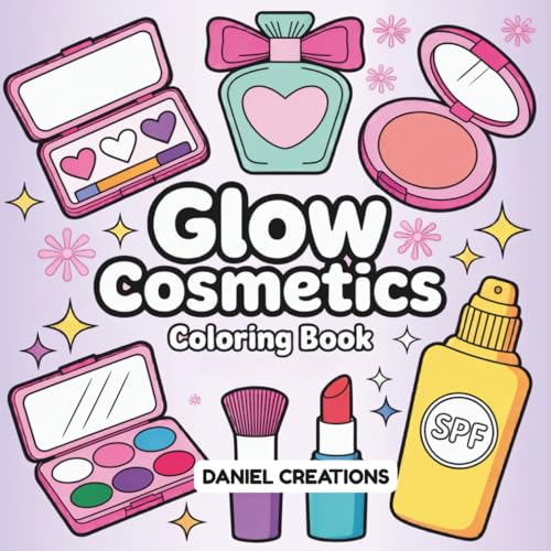 Glow Cosmetics Coloring Book for Adults and Kids: 50 Fun Beauty, Skincare, and Cosmetic Designs for Relaxing, Creativity, and Stress-Free Coloring for Kids and Adults