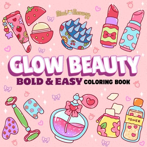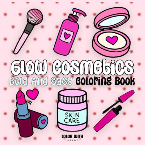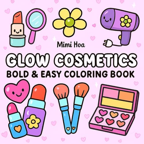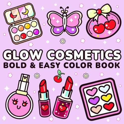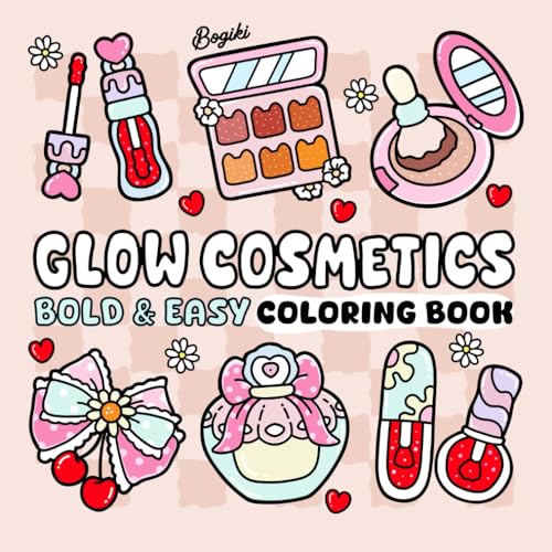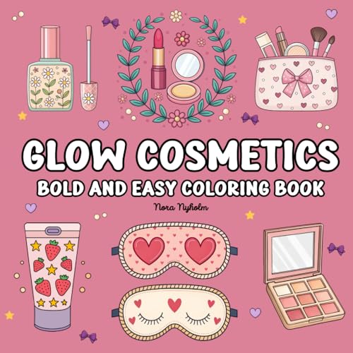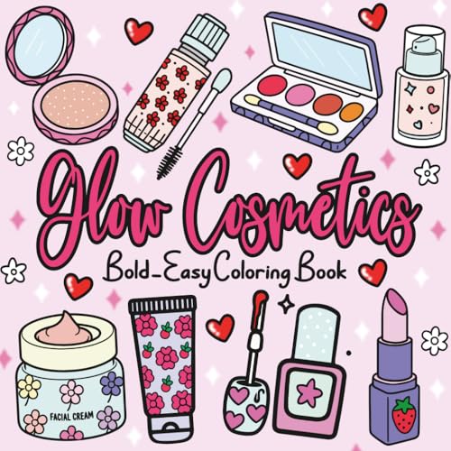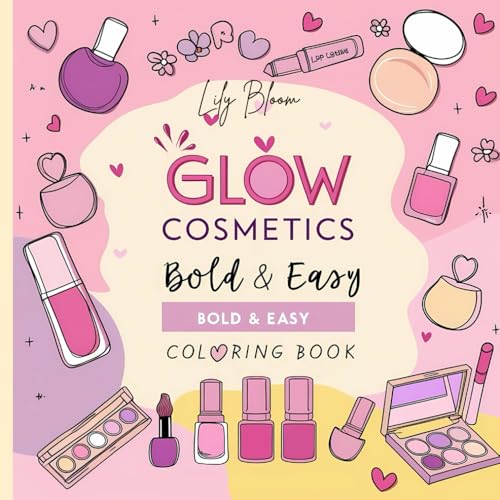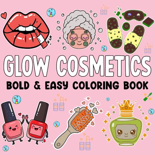 Glow Cosmetics Bold & Easy Coloring Book: Cute and Cozy Designs Coloring Book for Adults and Kids, Featuring Makeup, Skincare, and More Cosmetic Products for Relaxation (Bold and Easy Coloring)