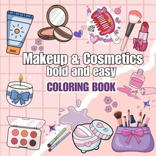 cosmetics colouring book for adults and kids,for Relaxation Featuring Cosmetic Items, Makeup, and Skincare Products (Bold & Easy Coloring: Bold and Easy, Simple and Big Designs for Relaxation