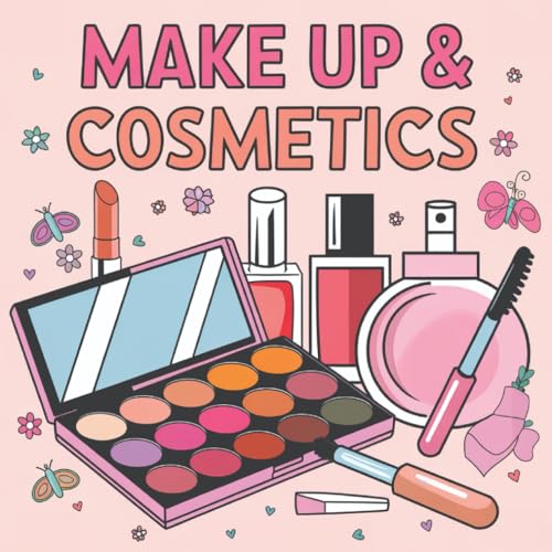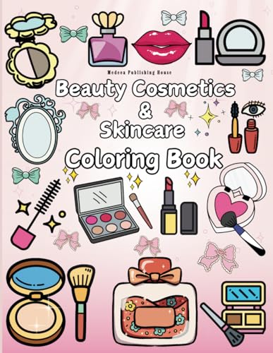 Makeup & Cosmetics: Coloring Book for Adults and Kids Featuring Fashion Designs, Cosmetic Items, Makeup, and Skincare Products.