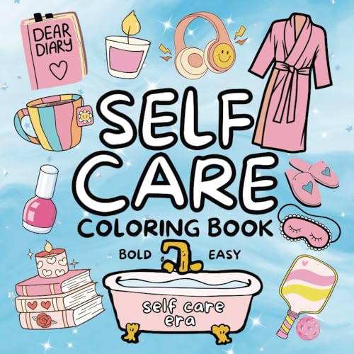 Self Care Era Coloring Book: 50 Bold And Easy Designs | Kids, Teens & Adults | Skincare, Hobbies, Sports, Healthy Food, Cosmetics