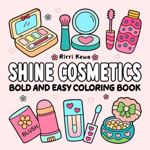Shine Cosmetics: Bold & Easy Coloring Book for Adults and Kids: Simple & Relaxing Beauty-Inspired Designs Featuring Makeup, Skincare & Cosmetic Items (Bold and Easy Coloring Books)