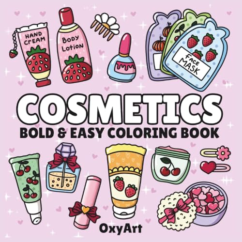 Cosmetics & Skincare Bold and Easy Coloring Book: Adorable, Big, Bold, Cozy, Cute, Easy, Fun Simple Designs for Adults, Kids, Teens, and Seniors for ... Makeup, and Skincare (Bold and Easy Coloring)