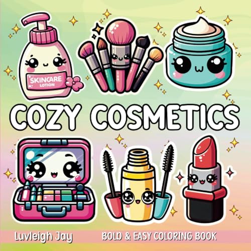 Cozy Cosmetics: Cute & Simple Coloring Book for Adults and Teens Featuring Makeup, Cosmetic, Skincare Products, Bold Outlines, Easy to Color
