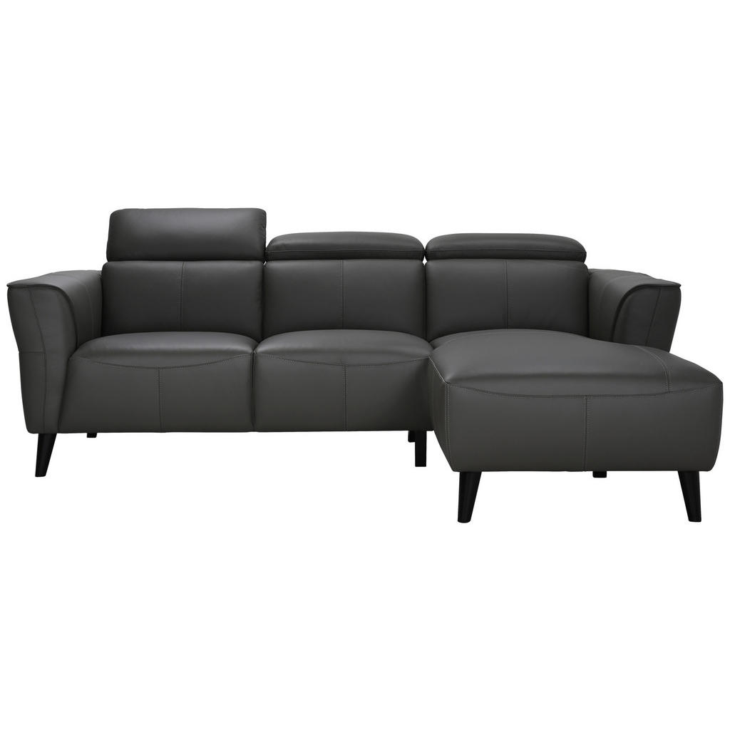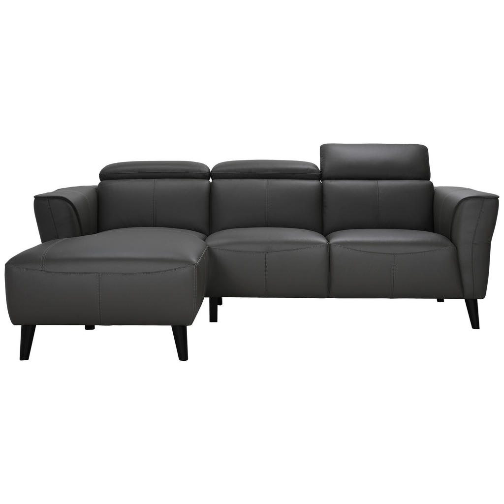 Hörnsoffa högerställd i antracitgrå skinn med elektrisk reclinerfunktion PASCALINE