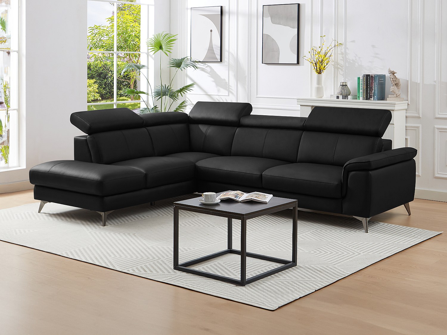 Vänstervändvänd hörnsoffa i svart läder MARAMBA