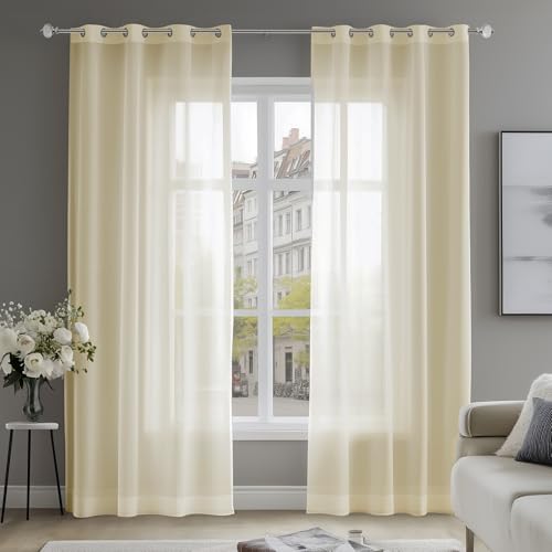 Deconovo Öljettgardiner, halvtransparenta skira gardiner, voilegardiner för kök, 140 x 234 cm (55 x 94 tum) (bredd x längd), beige, 2 paneler