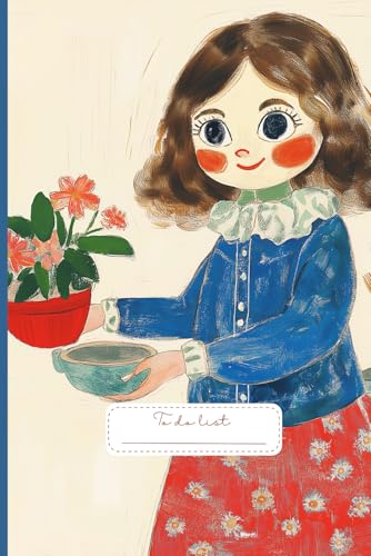 Adorable Flower Lady To Do List: A beautifully illustrated cover featuring a sweet girl in a vintage-style blue blouse and red floral skirt.