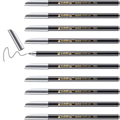 edding 1200 metallisk färgpenna – silver – 10 pennor – rund spets 1–3 mm – glitter metallisk markör för att skriva, rita och skissa – för gäster böcker, korttillverkning, gör-det-själv-fotoalbum och
