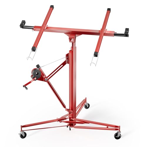 Wiltec XXL skivlyft röd max. 68 kg, höjdjusterbar skivhiss 140-350 cm för gipsskivor, träpaneler max. 2,90 m, 60° lutning för innertak-, snedtak- och väggmontage