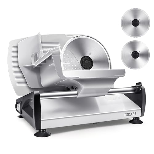 Elektrisk skivmaskin i rostfritt stål, köksrobot 0–15 mm justerbar från 0–15 mm, 2 blad, korvskärare, brödskiva, skinka och kött