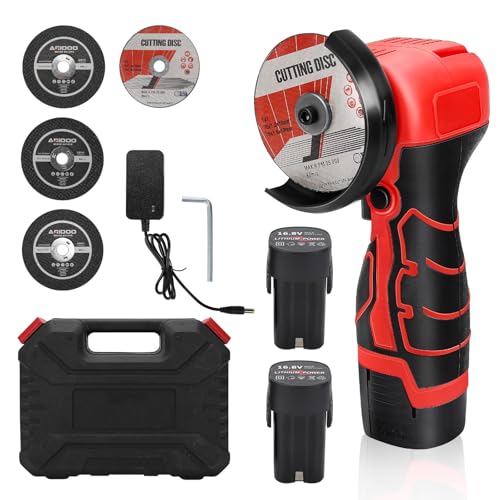 Mini trådlös vinkelslip, 28000RPM 16,8 V professionell skivmaskin med 2 batterier 2 000 mAh, 4 skärskivor 76 mm, vinkelslip för slipning och polering, skärning