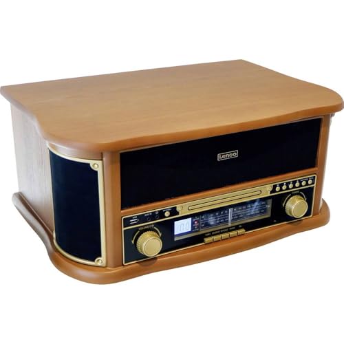 Lenco Retro skivspelare i trä med Bluetooth®, DAB+/FM-radio, USB-kodning, CD-spelare, kassettspelare och inbyggda högtalare