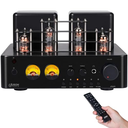 Juson Audio JTA50 rörförstärkare Hifi-förstärkare med BT 5.0, fjärrkontroll, AUX, COAX, Phono och USB-in, subwoofer-utgång, 2,1CH för skivspelare (JTA50)