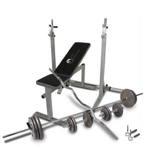Gorilla Sports Komplett Bänkpress Med Skivstång Curl Och Hantelset 100kg